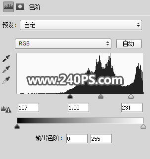 15、创建色阶调整图层,增加明暗对比,参数设置如下图,确定后把蒙版填充黑色。