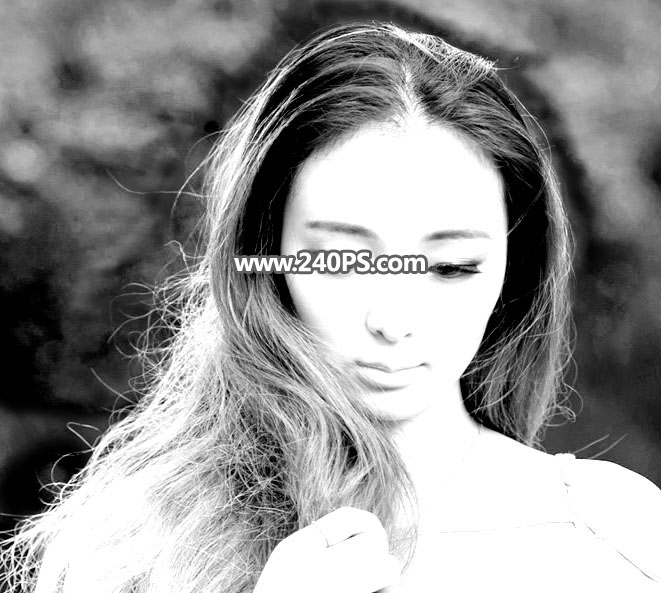 1、观察素材图片,人物右侧的头发比较暗,细节不是很明显,同时整体都非常暗,不利于细发丝抠取。