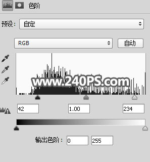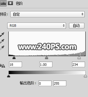 17、创建色阶调整图层,参数设置如下图,确定后把蒙版填充黑色。