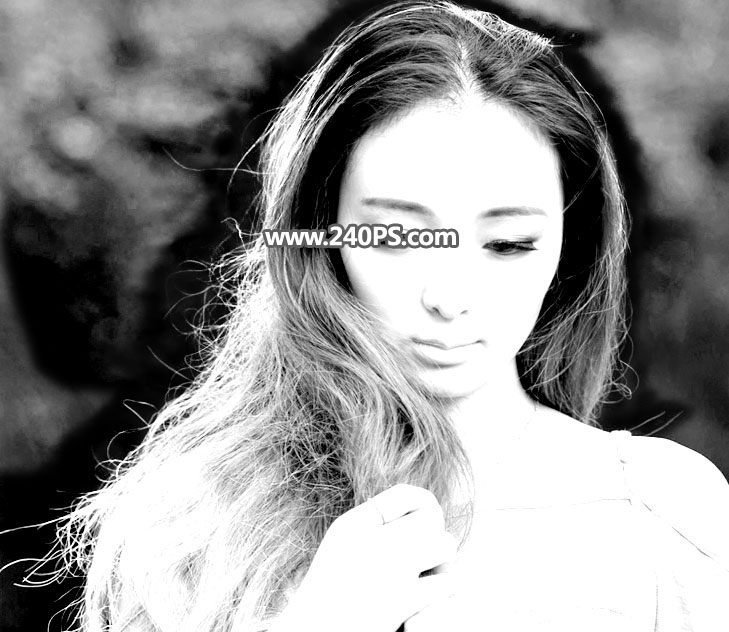 14、用柔边白色画笔把边缘头发区域涂出来,如下图。