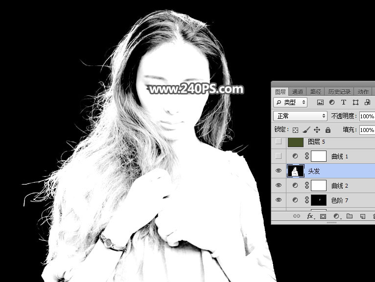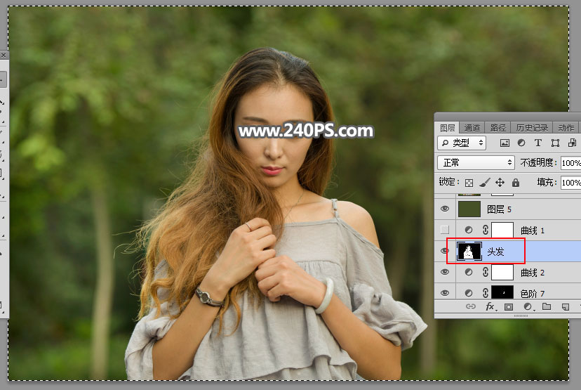 26、选择“头发”图层,按Ctrl + A 全选,按Ctrl + C 复制。