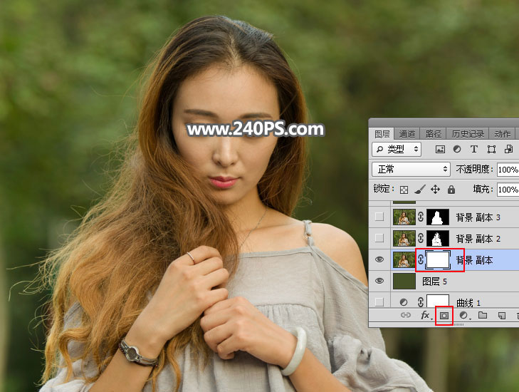25、选择背景副本图层,然后添加图层蒙版,如下图。