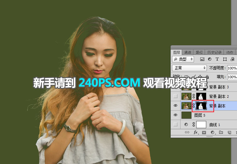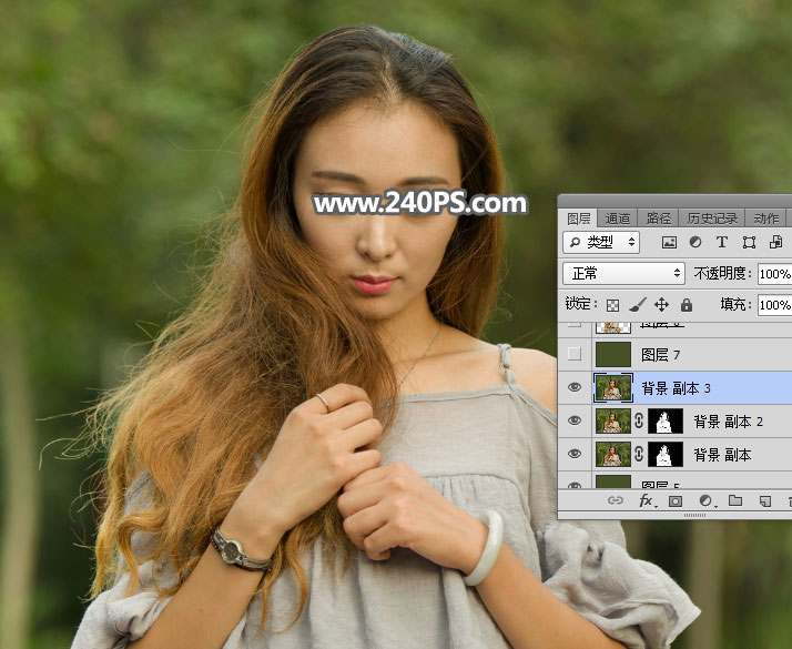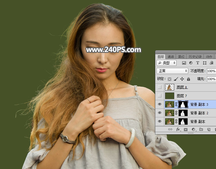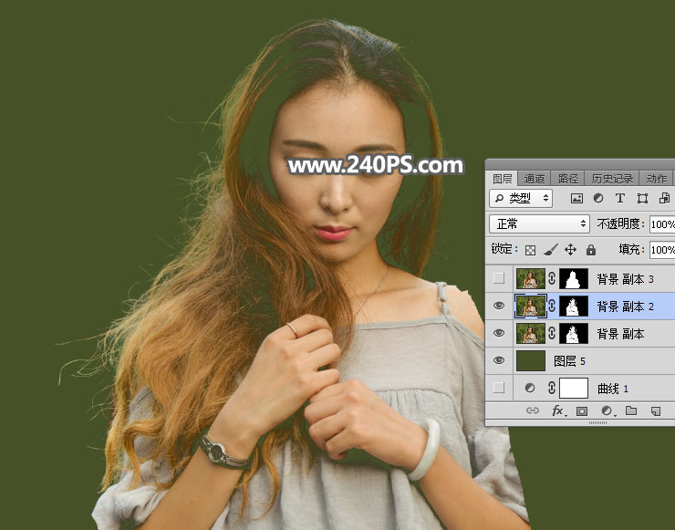 27、选择背景副本图层,把复制的头发图层粘贴到蒙版里面,如下图。