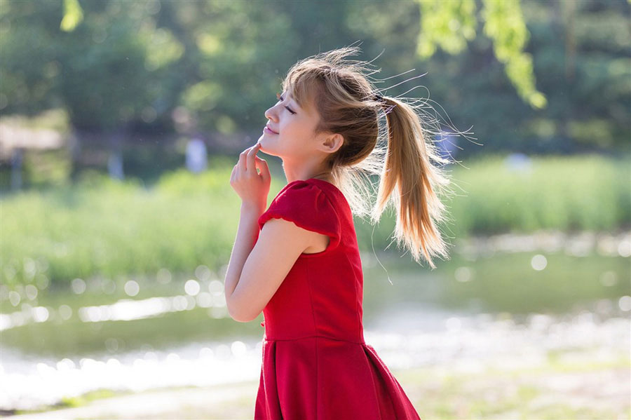 原图中人物发丝由于风吹的缘故,都飘了起来;同时人物有点逆光,飘起的发丝都比较亮;虽然杂乱了一点,不过发丝与背景色差较大,用通道抠取发丝是非常理想的,所以下面我们就一起看看如何使用PS通道工具抠出外景美女人像并更换背景。