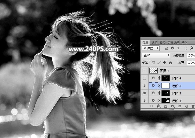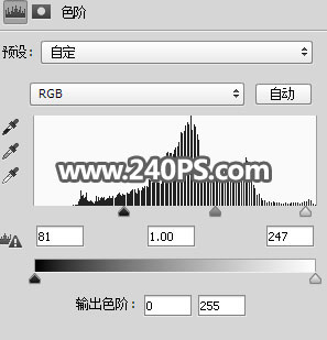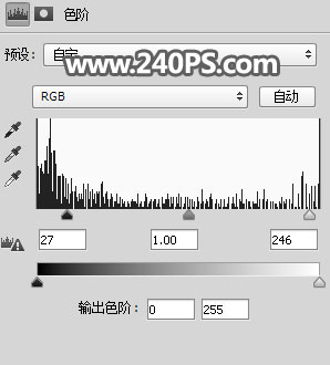 6、创建色阶调整图层,增加明暗对比,参数设置如下图。