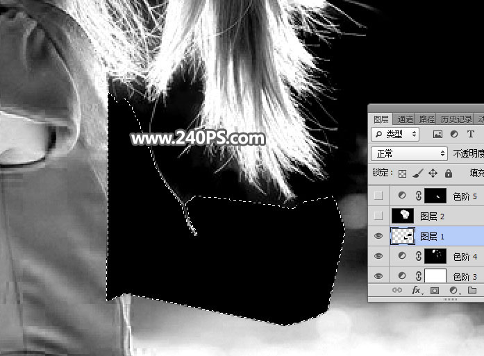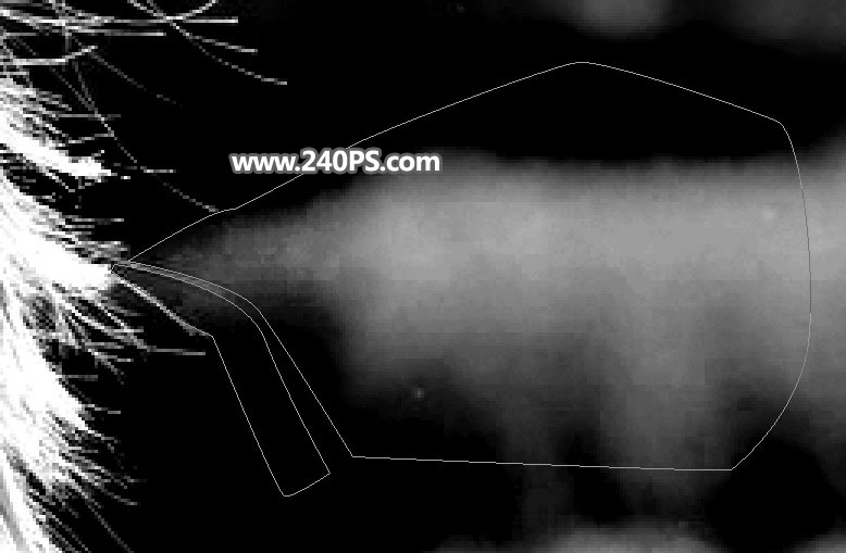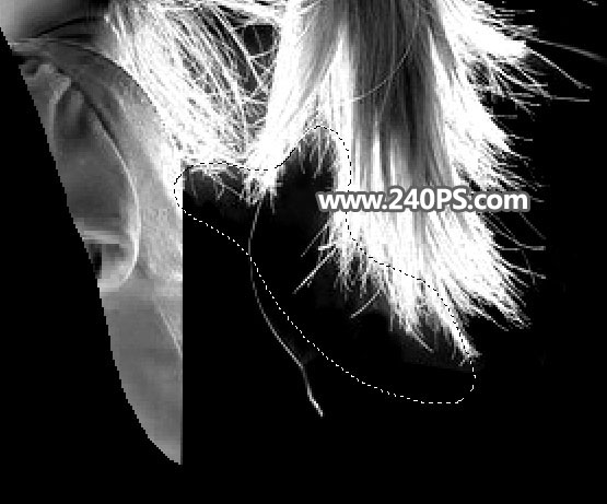 17、底部发丝区域也是一样,勾出选区填充黑色。