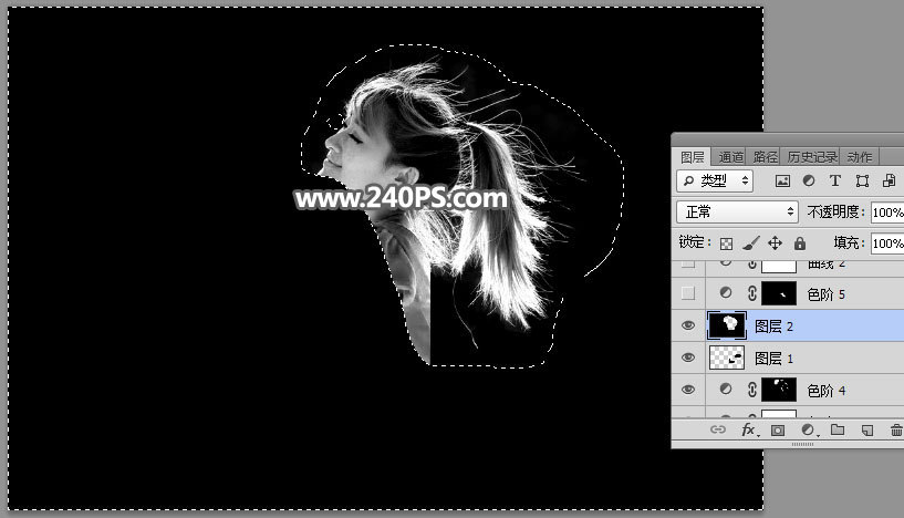 18、新建一个空白图层,用套索工具勾出发丝以外的背景,并填充黑色。