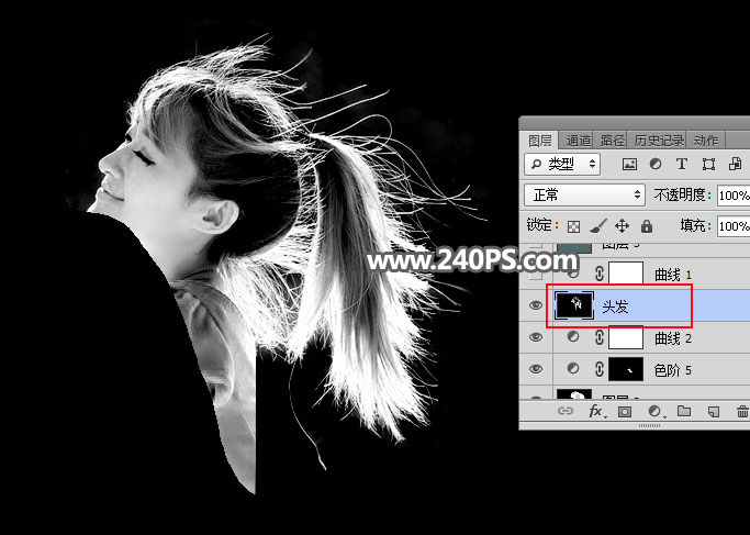 27、选择“头发”图层,按Ctrl + A 全选,按Ctrl + C 复制。