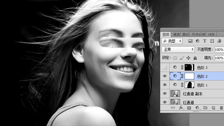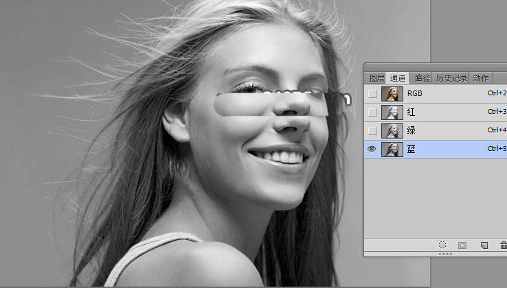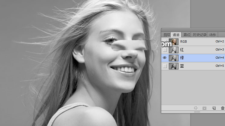 3、绿通道与红通道比较接近,只是高光发丝有点暗。