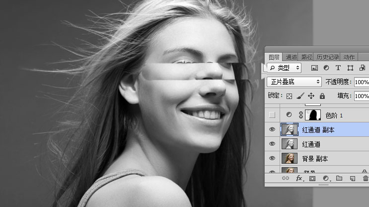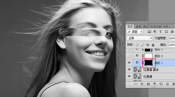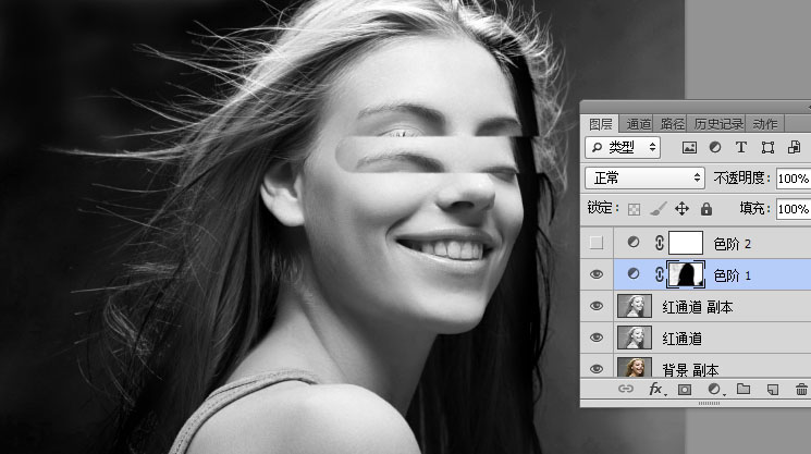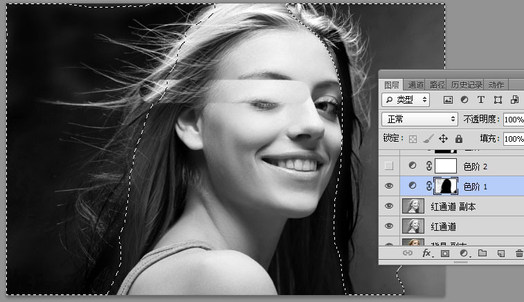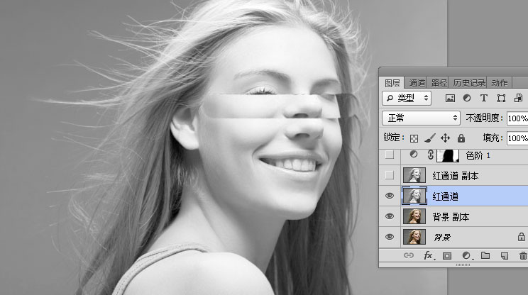 5、我们先来抠取高光发丝。红通道极为理想。选择红通道,按Ctrl + A 全选,按Ctrl + C 复制。
