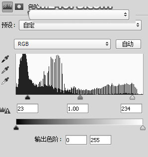 8、创建色阶调整图层,增加明暗对比,参数设置如下图,确定后把蒙版填充黑色。