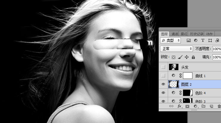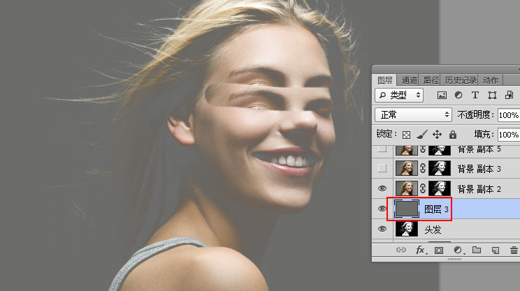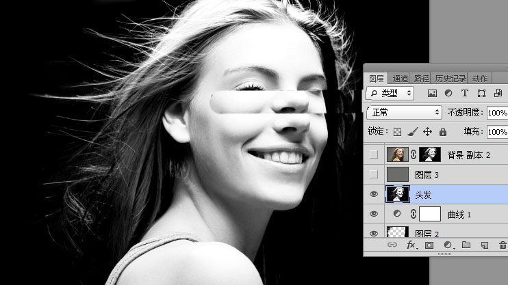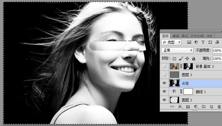 19、新建一个图层,按Ctrl + Alt + Shift + E 盖印图层,然后命名为“头发”。
