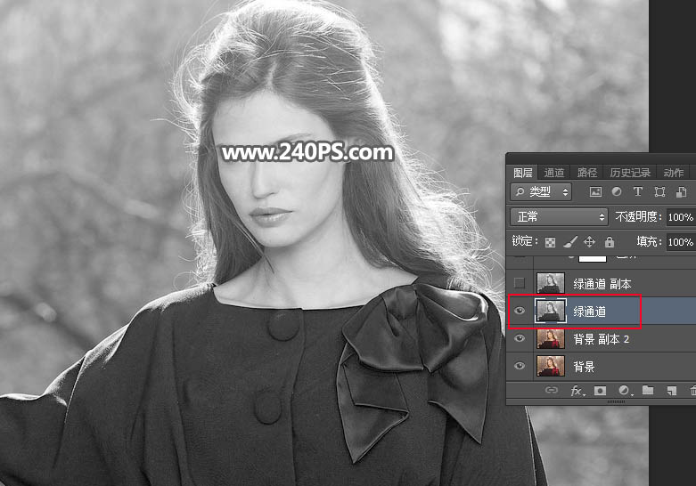 5、绿通道比较理想。选择绿通道,按Ctrl + A 全选,按Ctrl + C 复制。