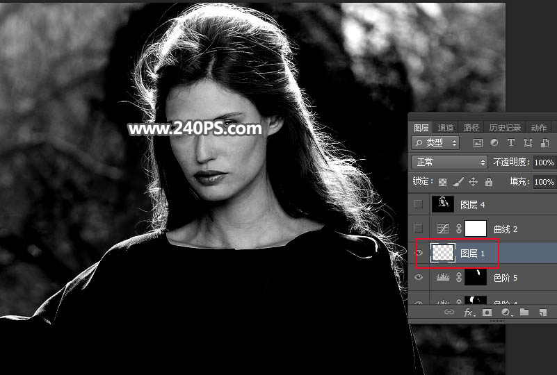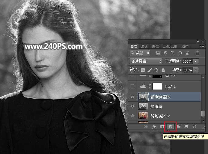 6、点RGB通道返回图层面板,新建一个图层,按Ctrl + V 把复制的绿通道粘贴进来,如下图。