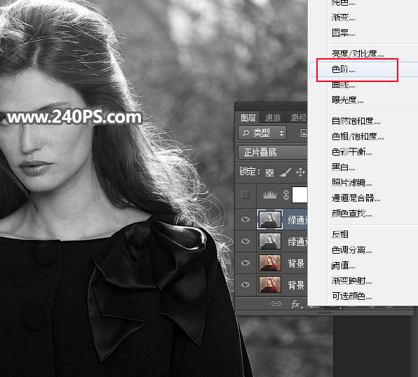 8、点击图层面板下面的“创建新的填充或调整图层”按钮,然后选择色阶。