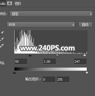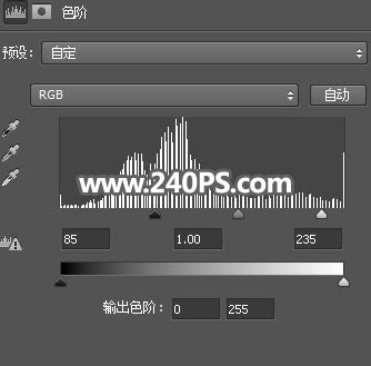14、再创建色阶调整图层,增加明暗对比,参数设置如下图,确定后把蒙版填充黑色。