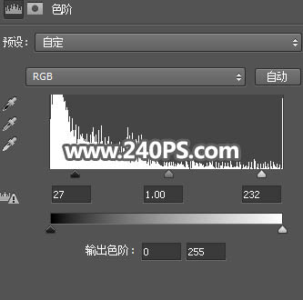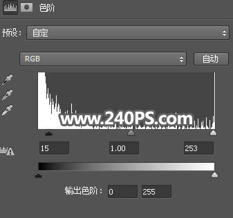10、同样的方法创建色阶调整图层,增加明暗对比,参数设置如下图,确定后把蒙版填充黑色。