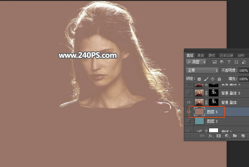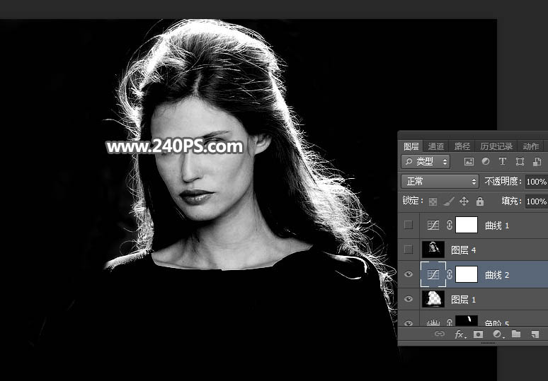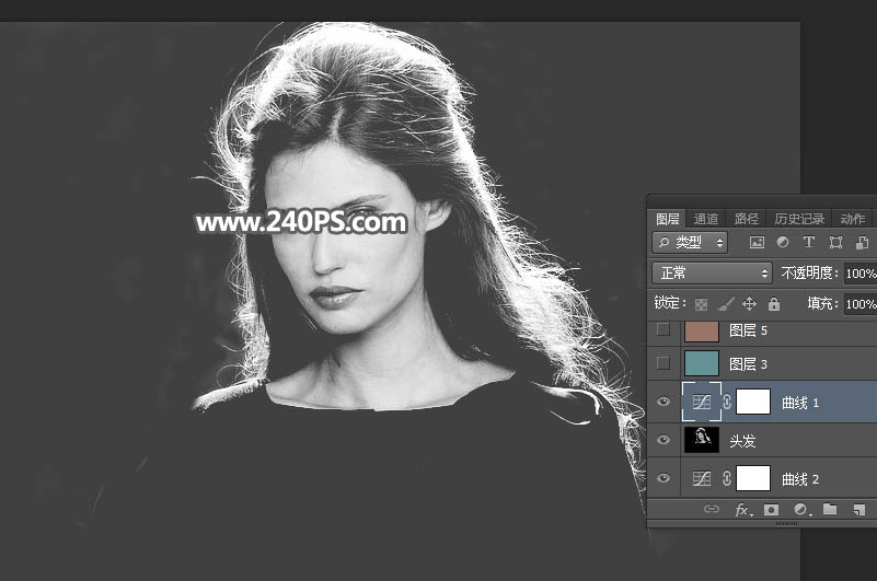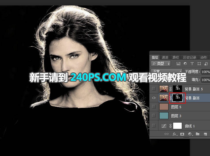 24、观察一下背景有没有处理干净,创建一个曲线调整图层,把暗部提亮一点,如果背景不干净,需要再用微调一下。