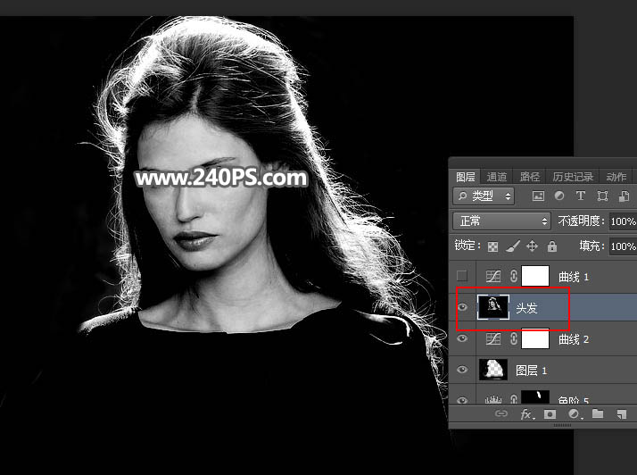 26、选择“头发”图层,按Ctrl + A 全选,按Ctrl + C 复制。