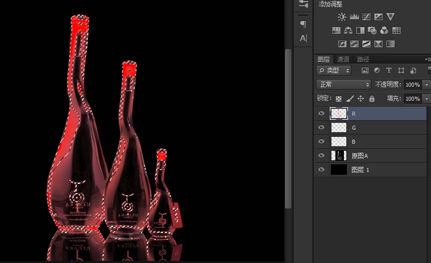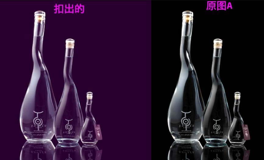 思路:将同道中的R G B 提取出来然后用滤色混合就能得到透明的物体!但本技法只能用于对纯白色或纯黑色背景下透明物体抠图!