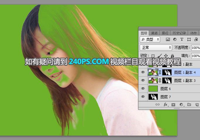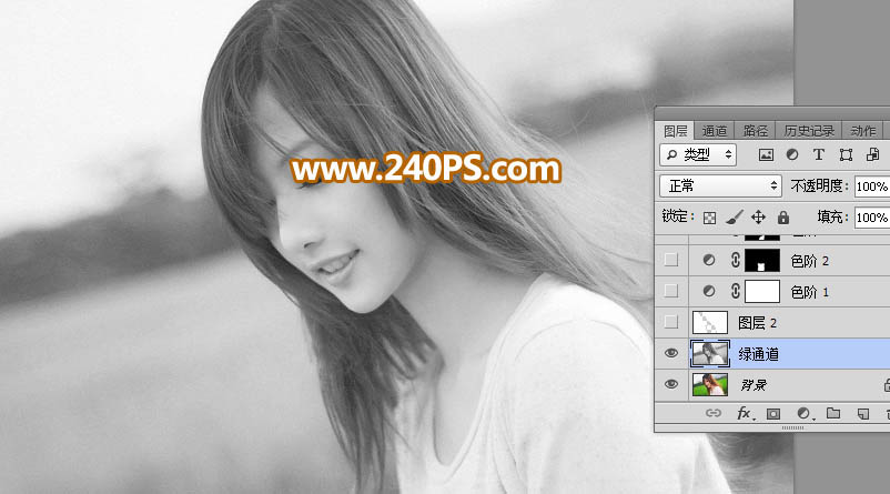 2、先来抠取左侧的发丝。选择绿通道,按Ctrl + A 全选,按Ctrl + C 复制。