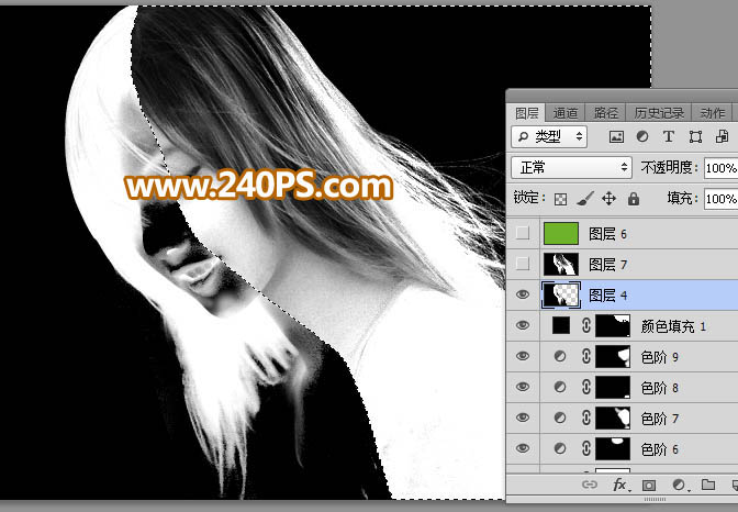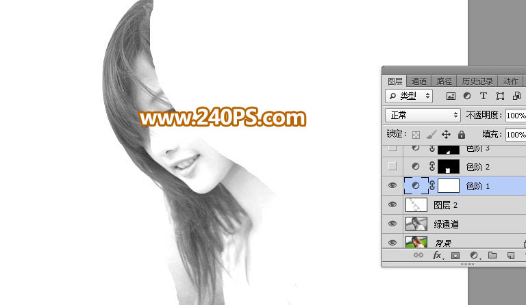 25、关键一步,用蒙版把发丝转换出来,如下图。
