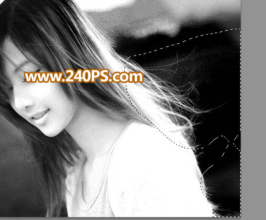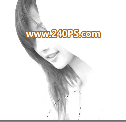 4、新建一个图层,用套索工具把左侧头发以外的区域勾出选区,并填充白色,如下图。