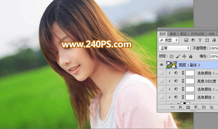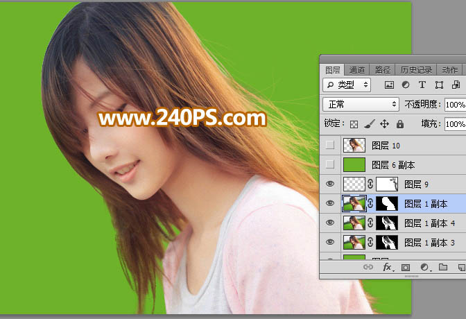 13、现在来处理右侧头发。把背景图层复制一层,按Ctrl + Shift + ] 置顶。