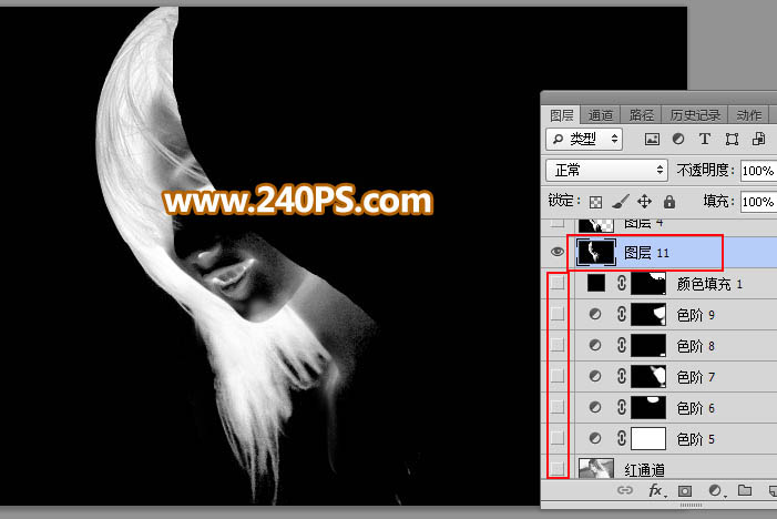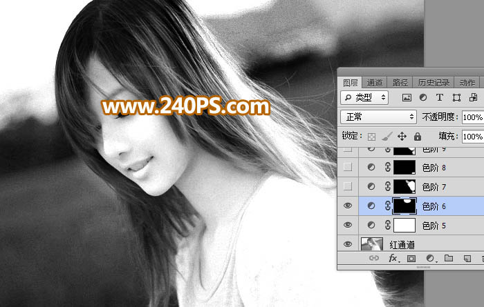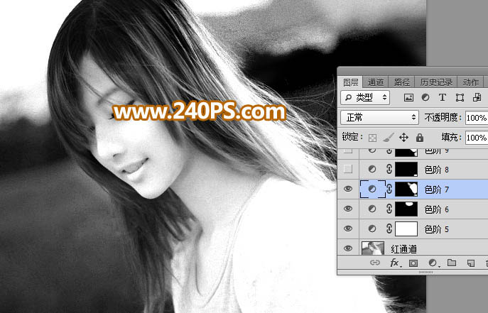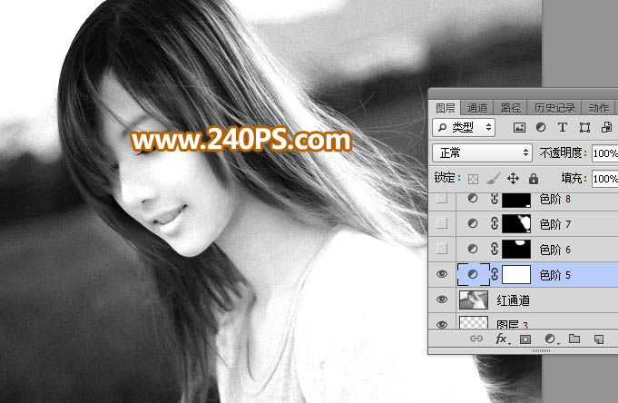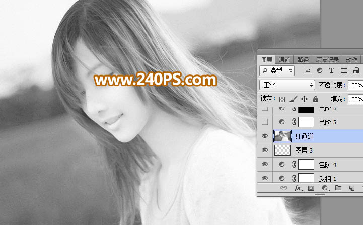 14、进入通道面板,选择红通道,按Ctrl + A 全选,按Ctrl + C 复制。点RGB通道返回图层面板,新建一个图层,按Ctrl + V 粘贴,如下图。