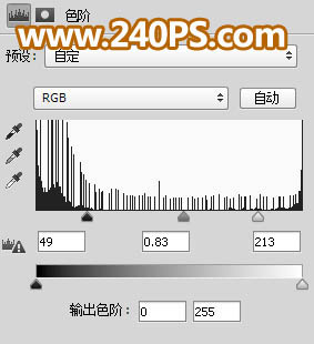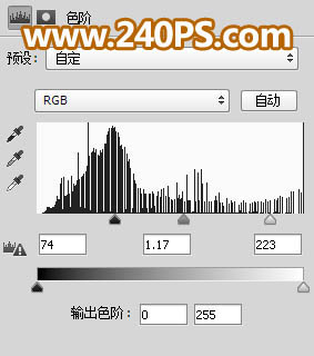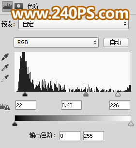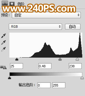 15、创建色阶调整图层,增加明暗对比,参数及效果如下图。