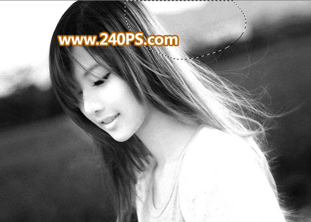 16、同样的方法用套索工具勾出顶部发丝区域,并把选区羽化15个像素。