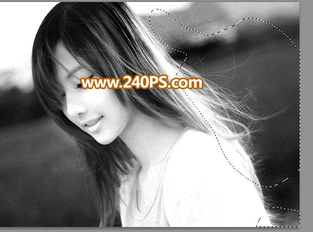 6、底部发丝背景还有一些灰色,用套索工具选取出来,并把选区羽化15个像素。