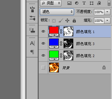 六:将上面的两个图层模式改为滤色,下面的可以不改。