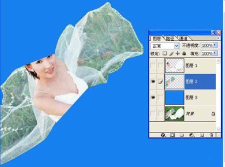 补充一点:大家一定要注意,这是一个很重要的补充!如果背景不同,最终效果不满意,可以将透明婚纱层去色,然后改图层模式为“屏幕”(即“滤色”),再用“亮度/对比度”命令根据具体情况稍做调整,效果一样好。