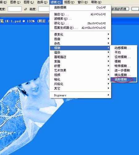 13、大家看,经高斯模糊后,消除了白草状的东西,但婚纱显得不够透明。
