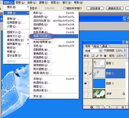 14、为了让婚纱透明些,就需要调整 “亮度/对比度 ”了。