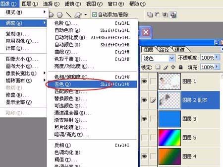 6、按住ctrl键,用鼠标电击红圈内图标按钮,在图层2的下方自动生成“图层3”,将图层3填充蓝色,如图所示: