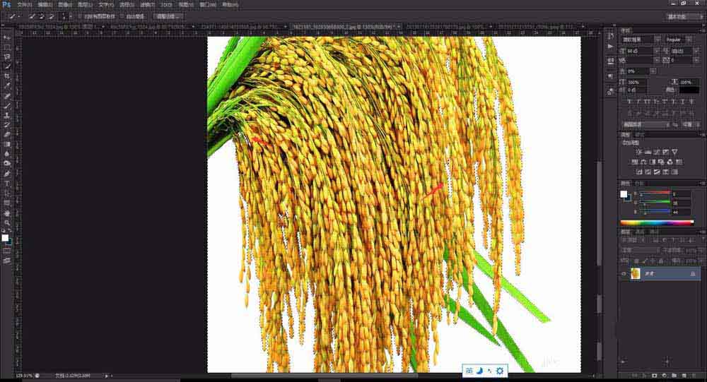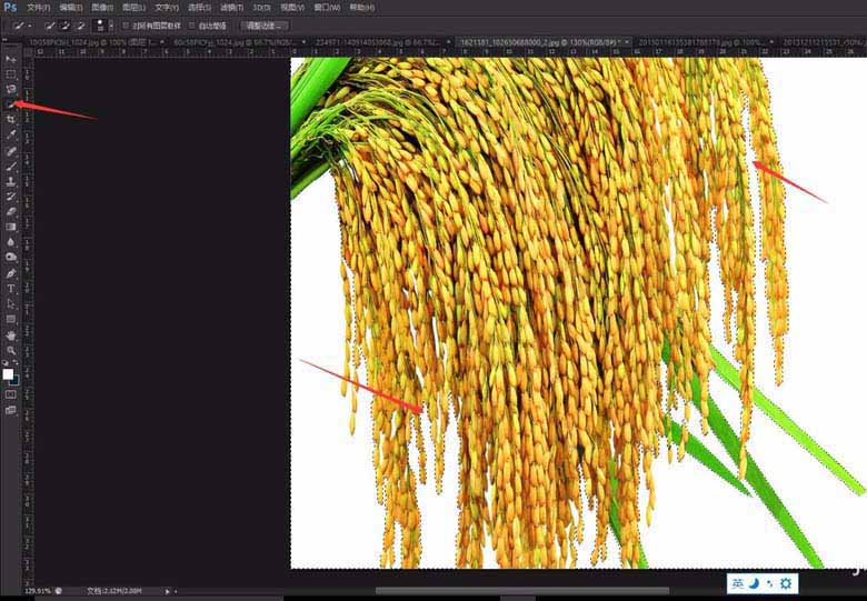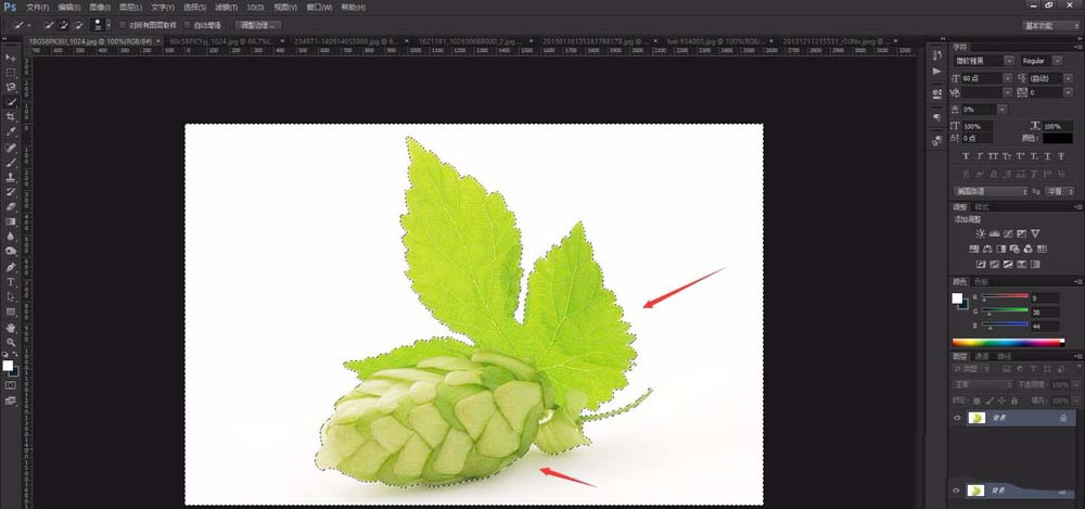 9、使用photoshop的快速选择工具,将图片中没有框选的区域进行框选,不需要的地方去除,在处理时,尽量将背景全部选中,主体也可以略微被选,对后期使用影响不大。