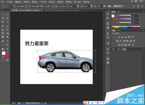 3、打开一张车的图片,选择钢笔工具,然后用crl+号键来放大图像,然后用钢笔工具勾画边缘。