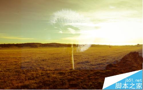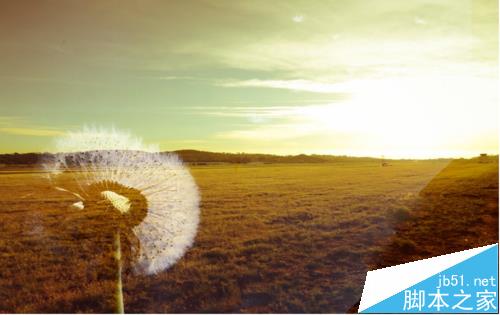 8、打开一个背景图片。将图层一拖动到田野图片中就可以了。(蒲公英的叶子以及蒲公英茎选多少大家自己决定)