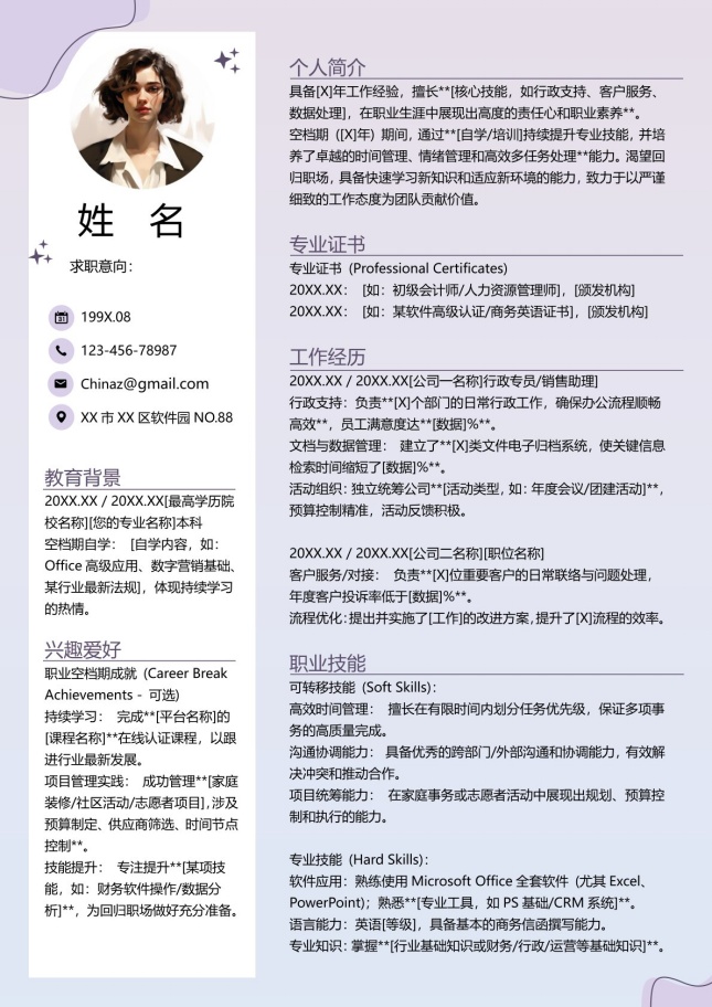 宝妈再就业通用简历模板,适用于宝妈简历管、通用简历、求职简历、个人简历、商务简历、找工作简历、竞聘简历等相关的个人简历主题设计应用。
