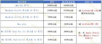 总之,苹果教育优惠涵盖了多种产品,从笔记本电脑到平板电脑,再到音频设备,为学生和教育工作者提供了丰富的选择,满足不同场景下的学习、工作和娱乐需求,让大家能以更优惠实惠的价格享受苹果产品带来的便利与精彩。
