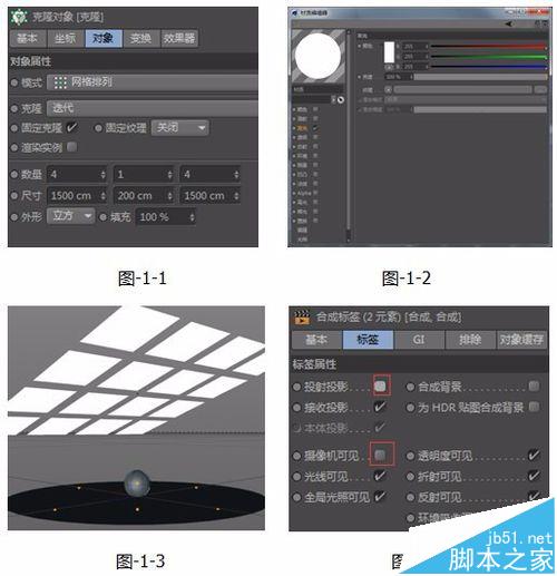 1、地面反射板创建:新建一个平面,运动图形-克隆,赋予一个自发光材质,选择克隆位置Y轴800,Z轴旋转20度,创建一个球体,半径1500,选中球体和平面-添加C4D标签(合成标签),投射投影和摄像机可见去掉勾。