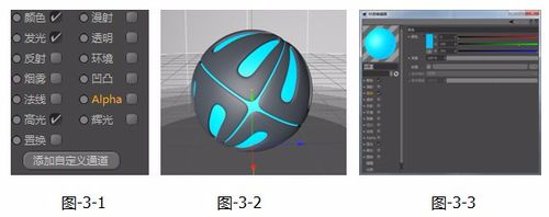 3、内发光球材质:双击创建一个材质,勾选发光选项,材质颜色和发光颜色:科技蓝。