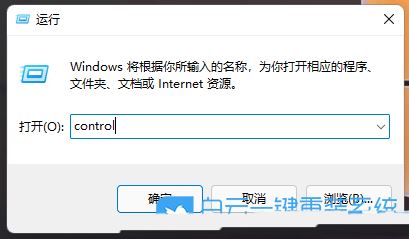 2、运行窗口,输入【control】命令,按【确定或回车】,打开控制面板;
