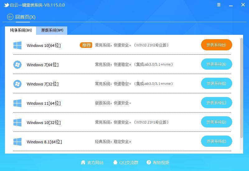2、提供了【纯净系统】和【原版系统】,方便用户下载并且安装适合自己的操作系统;