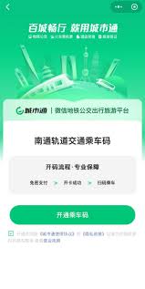 总之,南通地铁app扫码乘车为市民提供了便捷、高效的出行方式。通过简单的几步操作,就能轻松乘坐地铁,享受城市轨道交通带来的便利。大家不妨赶快下载南通地铁app,体验便捷的扫码乘车之旅吧。
