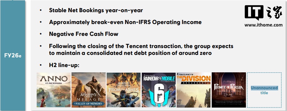 11 月 21 日消息,据游戏媒体 Insider Gaming 今天报道,育碧刚刚公布了 2025-2026 财年上半年财报,此前该公司曾因延迟公布财报而被短暂停牌。