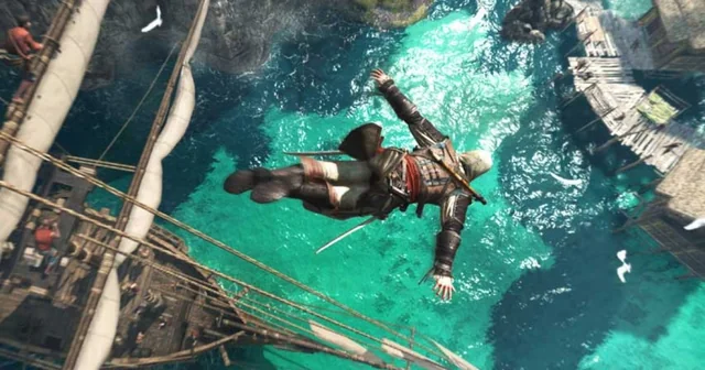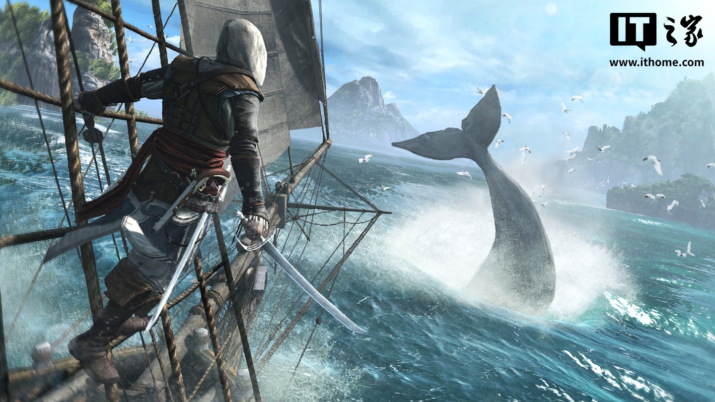 注:《刺客信条 4:黑旗》原版发布于 2013 年 10 月 29 日,登陆 PS3、Xbox 360、Wii U、PS4、Xbox One、Switch、PC 等平台,是《刺客信条》系列的第六部作品兼第四部正统续作,也是《刺客信条 3》的前传。