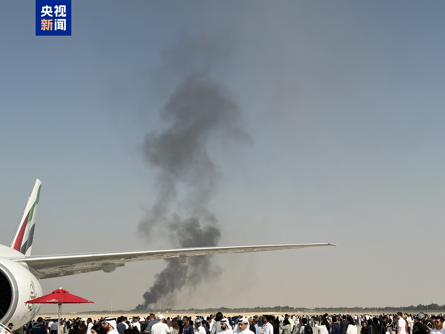 美联社描述说,事发时大量黑烟从机场上空升起,现场观众目睹了这一幕,坠机后警笛声此起彼伏。